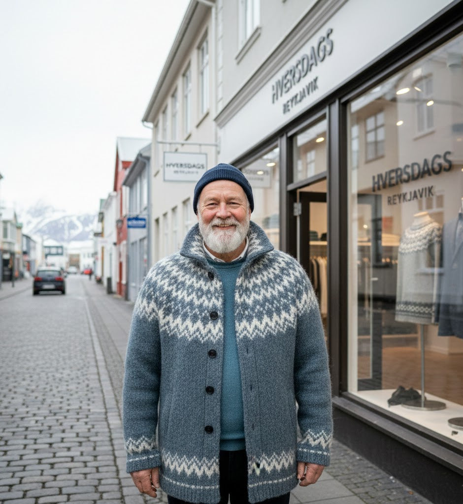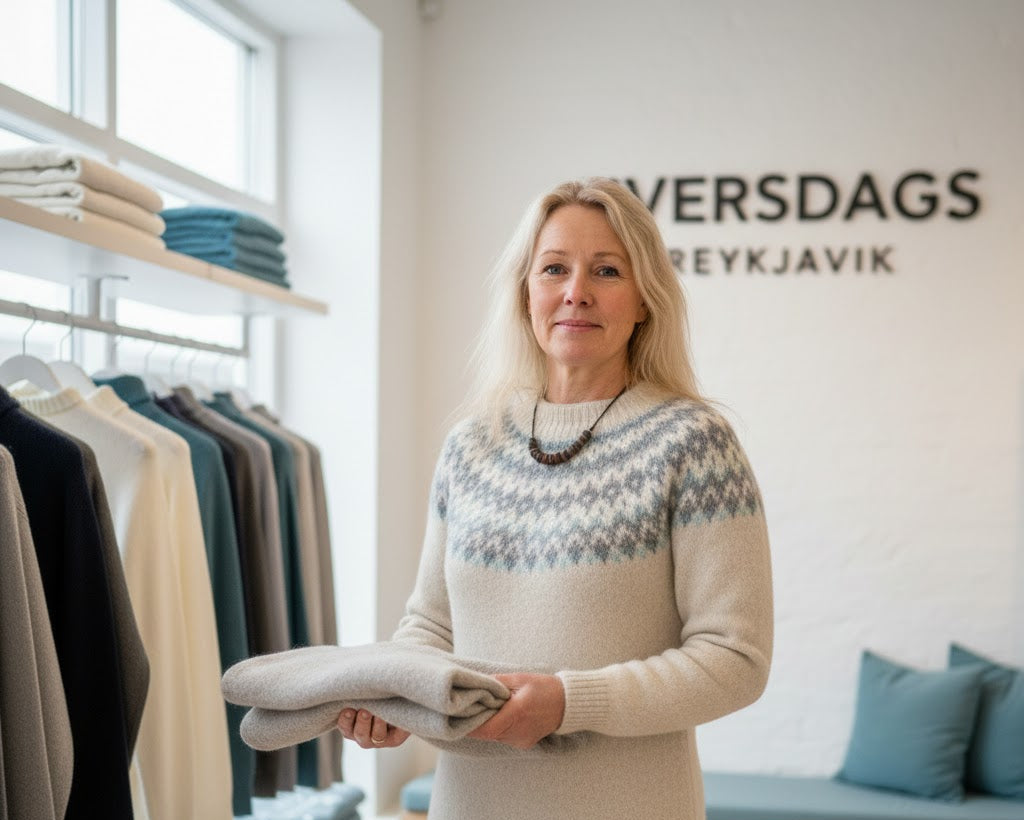 Ég heiti Sindri Ólafsson og ásamt eiginkonu minni, Kristínu Ólafsson, stofnuðum við þessa verslun fyrir 8 árum vegna þess að Kristínu finnst gaman að hanna föt og vill selja þau til að gleðja aðra. Fatnaðurinn er gerður til að halda hita í kalda landinu okkar, en einnig til að líta vel út. Til að fagna nýja árinu höfum við gefið út afsláttartilboð í þessum mánuði. Þau gilda til loka mánaðarins, en vertu fljótur því birgðir eru takmarkaðar.