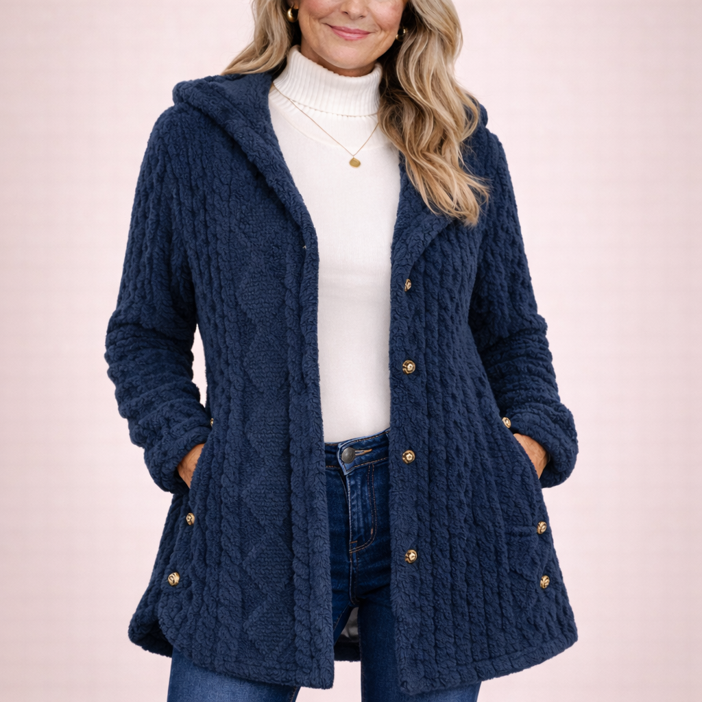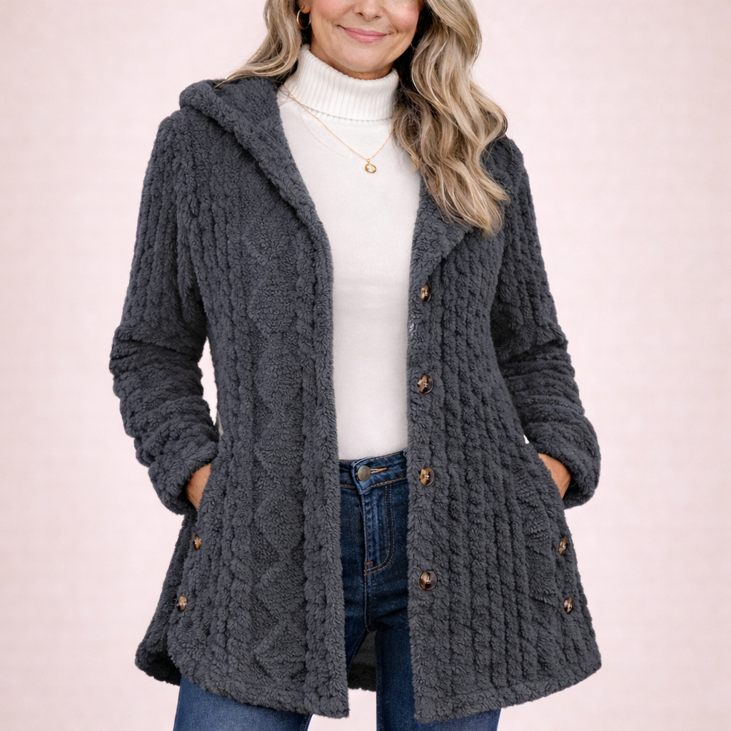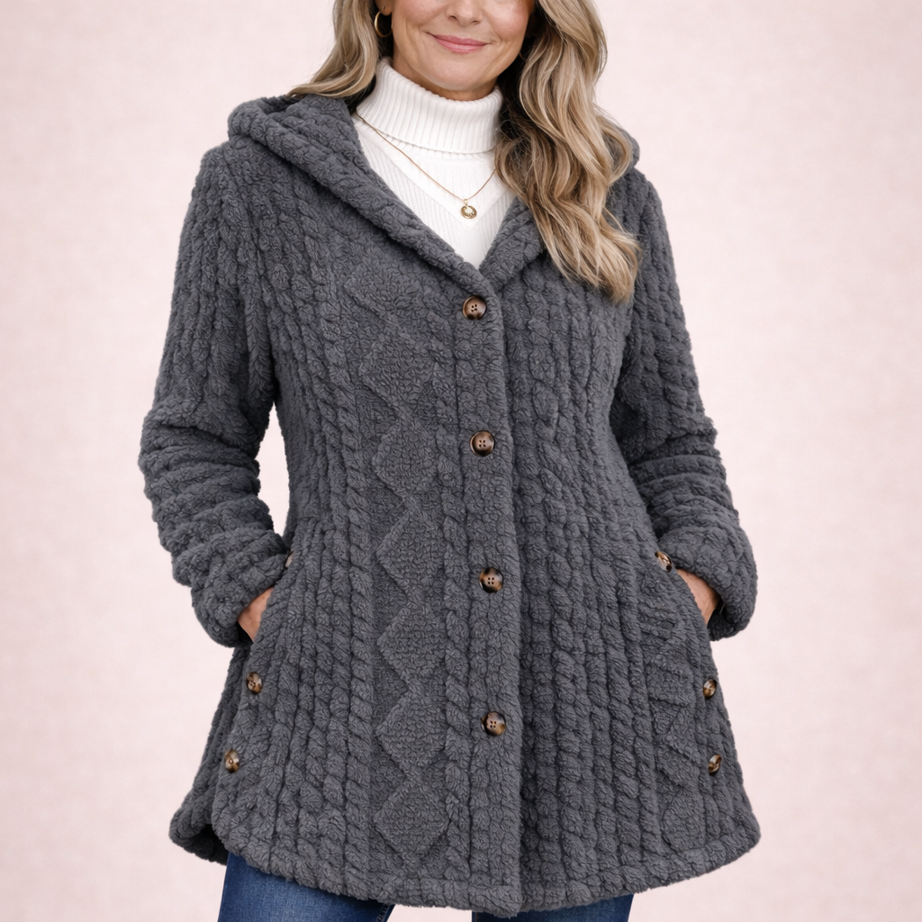 Elise er hannaður fyrir konur sem leitast eftir því að sameina munað og notalega í sínum daglega klæðaburði. Þessi vandaði prjónajakki einkennist af öðru mjúkri og þykkri áferð sem tryggir hámarks vellíðan og slökun allan daginn. Með sínu rúmgóða sniði og fágaðri er Elise hin fullkomna flík til lagskipta sem heldur þér hlýrri og stílhreinni yfir allt tímabilið.