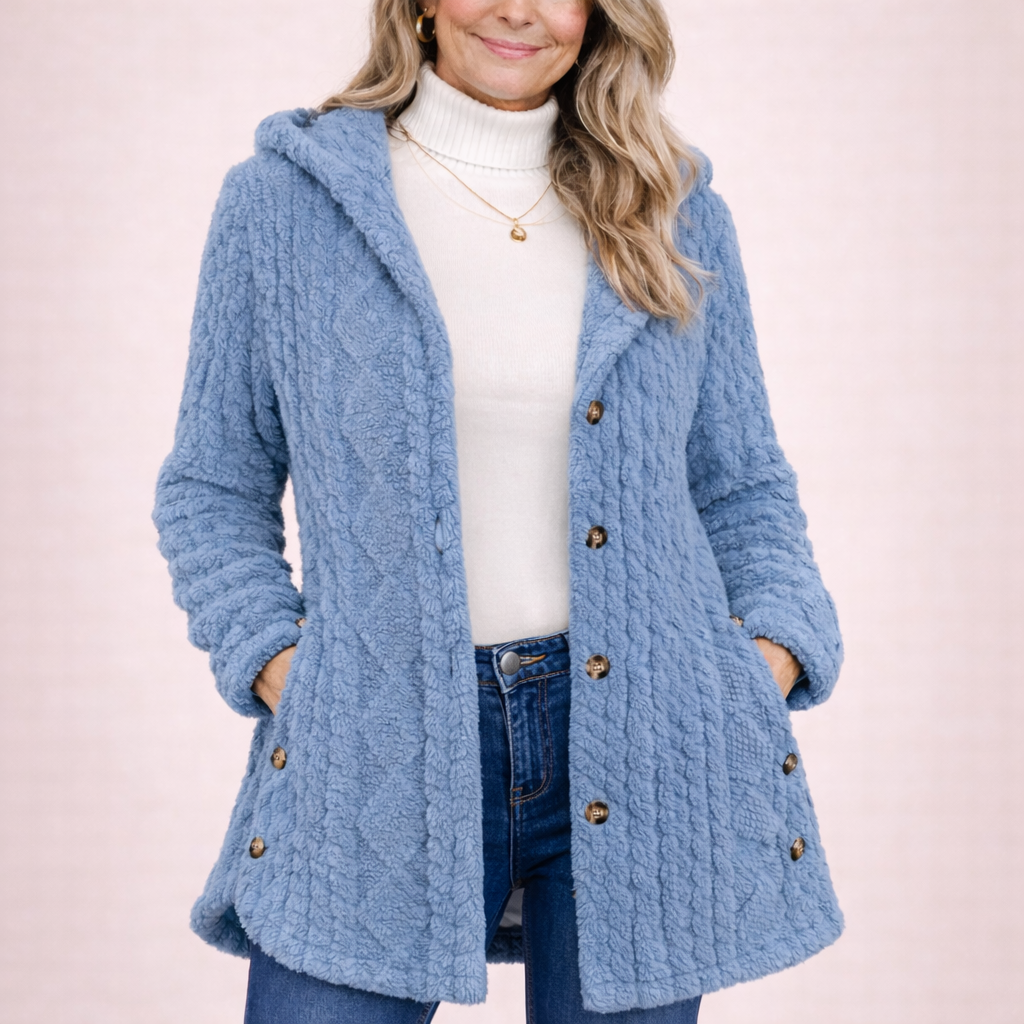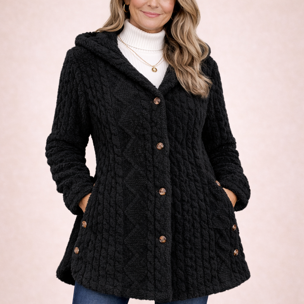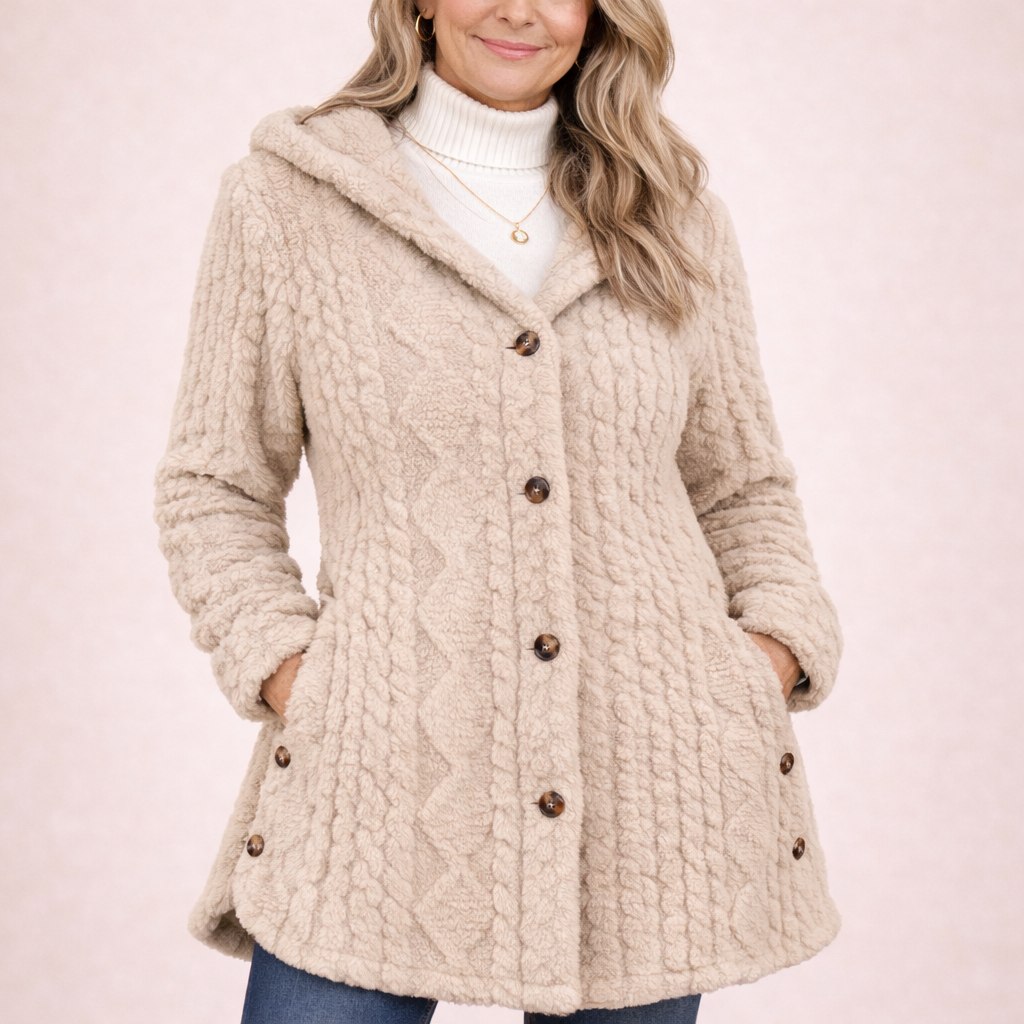 Elise er hannaður fyrir konur sem leitast eftir því að sameina munað og notalega í sínum daglega klæðaburði. Þessi vandaði prjónajakki einkennist af öðru mjúkri og þykkri áferð sem tryggir hámarks vellíðan og slökun allan daginn. Með sínu rúmgóða sniði og fágaðri er Elise hin fullkomna flík til lagskipta sem heldur þér hlýrri og stílhreinni yfir allt tímabilið.